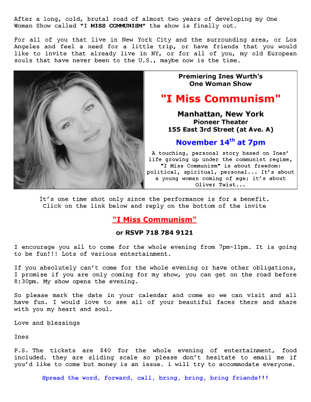 Premiering Ines Wurth's One Woman Show