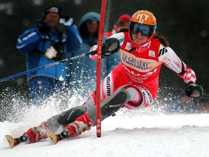 Olympic champion Janica Kostelic from Croatia races down the slope to during the World Cup women's slalom in Lenzerheide, Switzerland, Sunday. Kostelic skied two excellent runs to easily win a World Cup slalom and combined. (AP/Keystone, Eddy Risch)