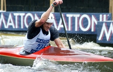 Emil Milihram of Croatia on his way to win the C1 race of the World White Water Championships on the Tepla River in Karlovy Vary, Czech Republic, Wednesday, June 14, 2006. (AP Photo/CTK, Ivan Babej)
