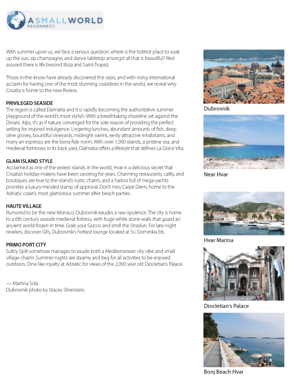 Croatia: New Riviera - Old beauty Formatted for CROWN byMarko Puljiæ Distributed by www.Croatia.org This message is intended for Croatian Associations / Institutions and their Friends in Croatia and in the World. The opinions / articles expressed on this list do not reflect personal opinions of the moderator. If the reader of this message is not the intended recipient, please delete or destroy all copies of this communication and please, let us know! Or simply...enjoy and spread the word and good vibrations.