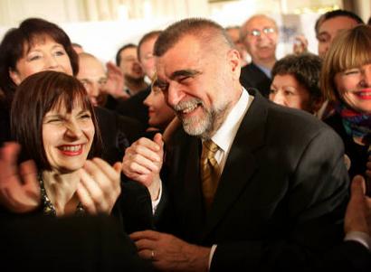 President Stjepan Mesic celebrates his victory in 2005